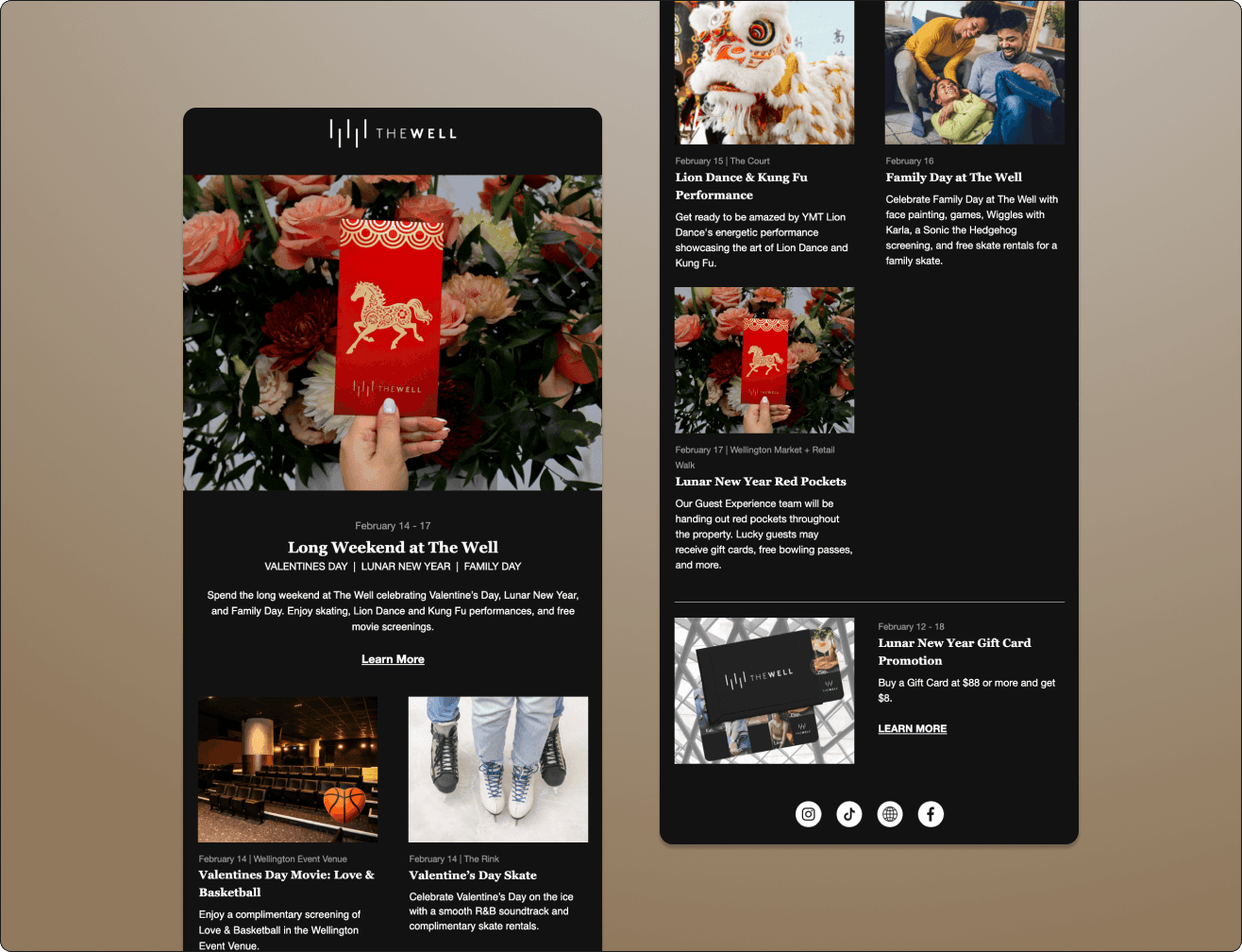 Redesigned The Well’s newsletter to improve readability and engagement by prioritizing skimmable content, clear hierarchy, and quick scanning.
